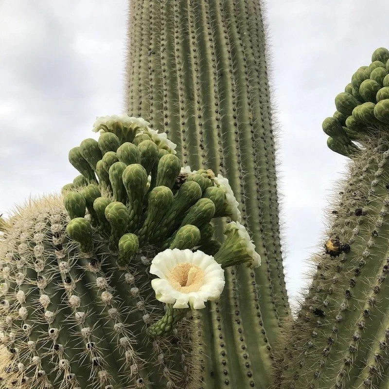 El cactus más espectacular del desierto de Sonora es la Carnegia gigantea, conocido como Saguaro o Sahuario. Puede llegar a ser centenario y alcanzar los quince metros de altura, con una silueta que se reconoce desde largas distancias.